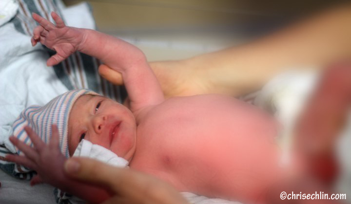 12:56 p.m. – I decided it was time for me to come out of Mommy’s wonderful womb and join the real world, so Mommy had to start pushing. Mommy was so strong and amazing, she pushed and pushed and pushed. It didn’t take very long before you could see my head.